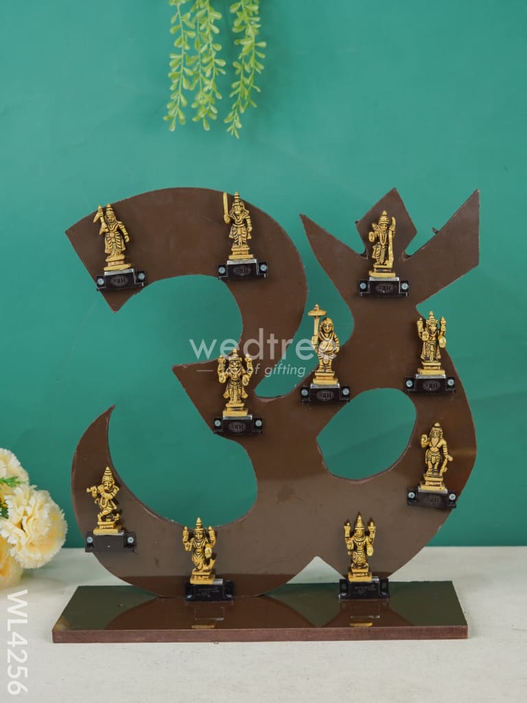 - Featured is a lovely decor made of Wood and Brass figurines of Dasavatharam - ten incarnations of Mahavishnu arranged on the OM shaped frame.