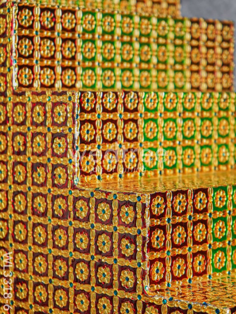 - A very festive Golu Stand with Meenakari finish that can add more vibrance to your festival decorations, beaming its grandness through that maroon, green and gold color combination.
