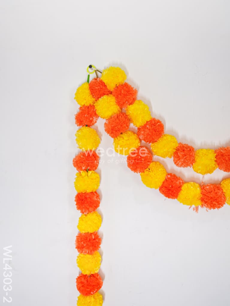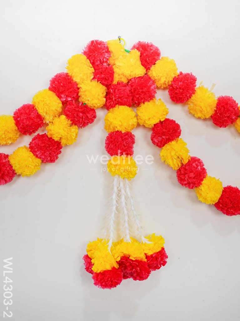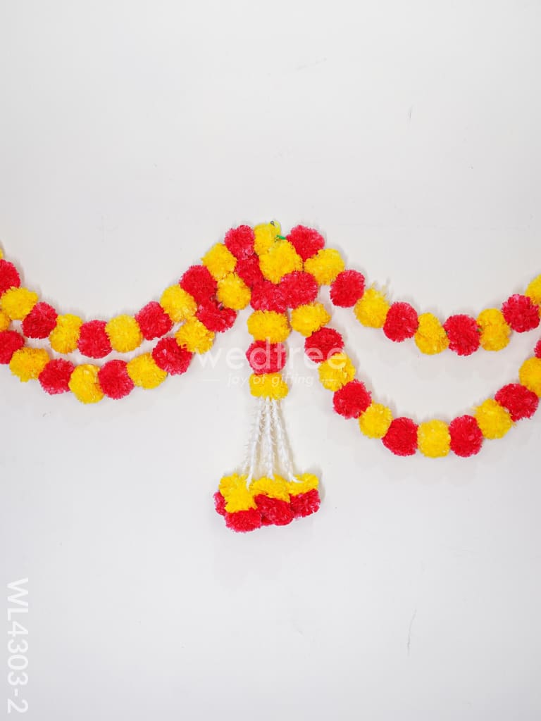 - This vibrant thoran is available in two choices: orange and yellow flowers, or red and yellow. It's ideal for beautifying the entrance of your pooja mandir or home, adding a lively and inviting accent to your decor.