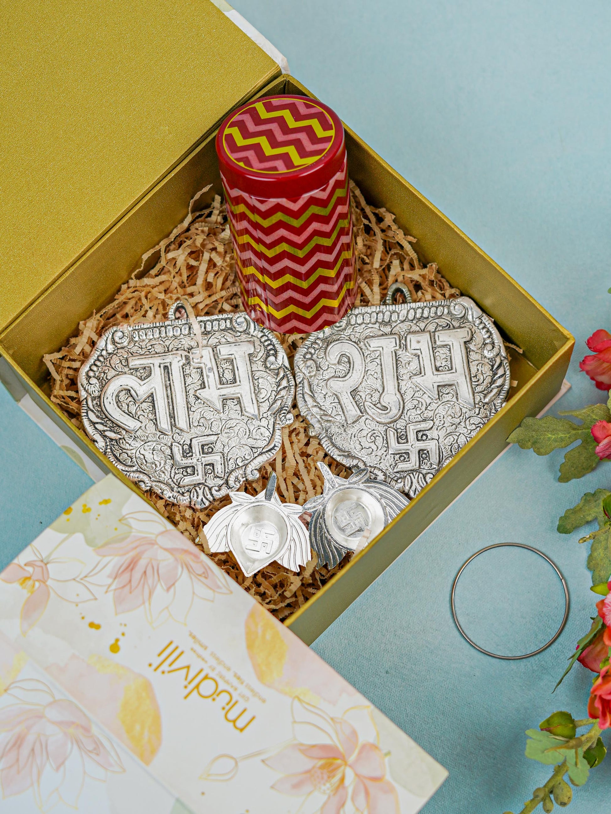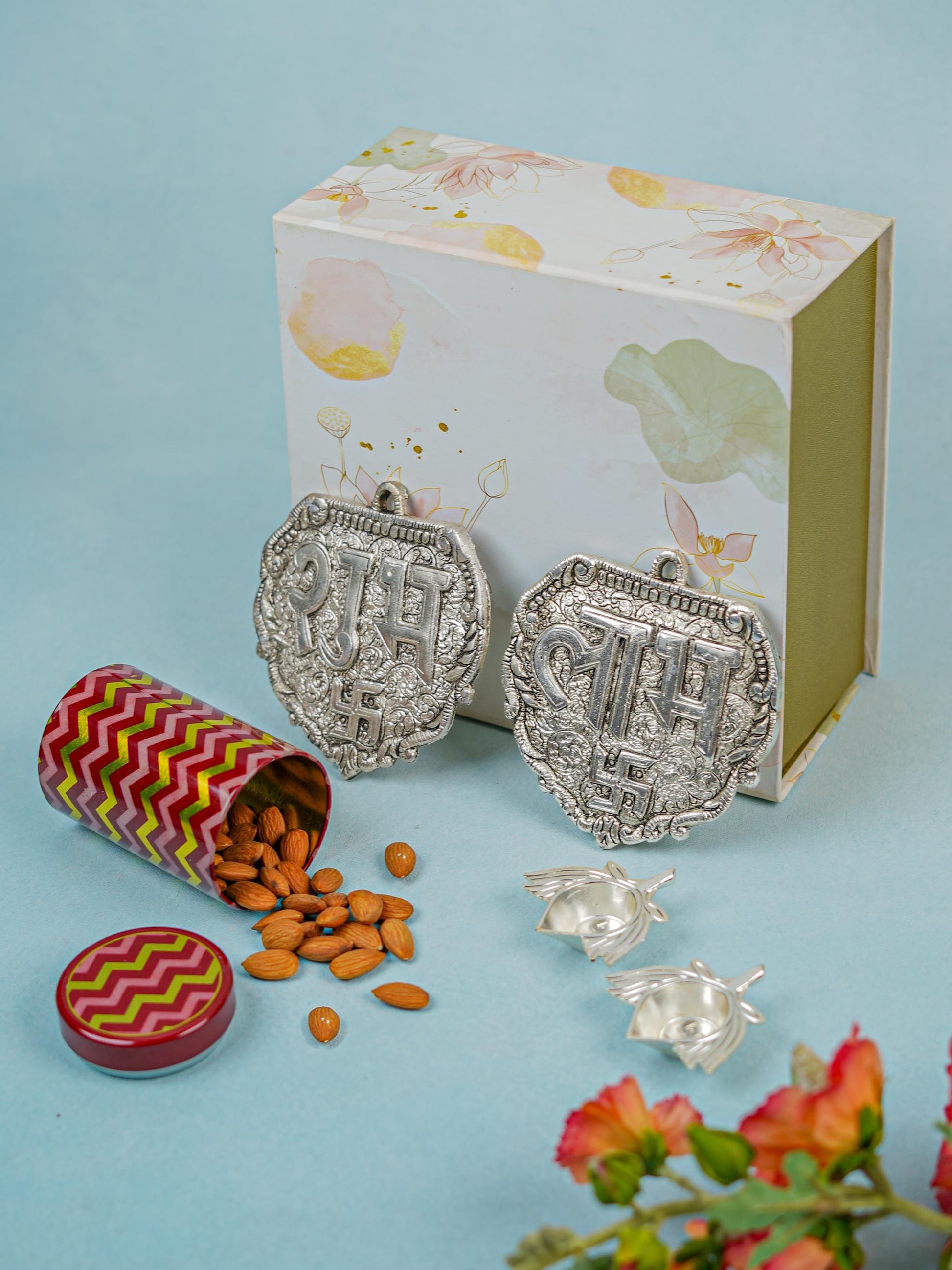 1 Pair of Shubh & Laabh Plates (White metal)