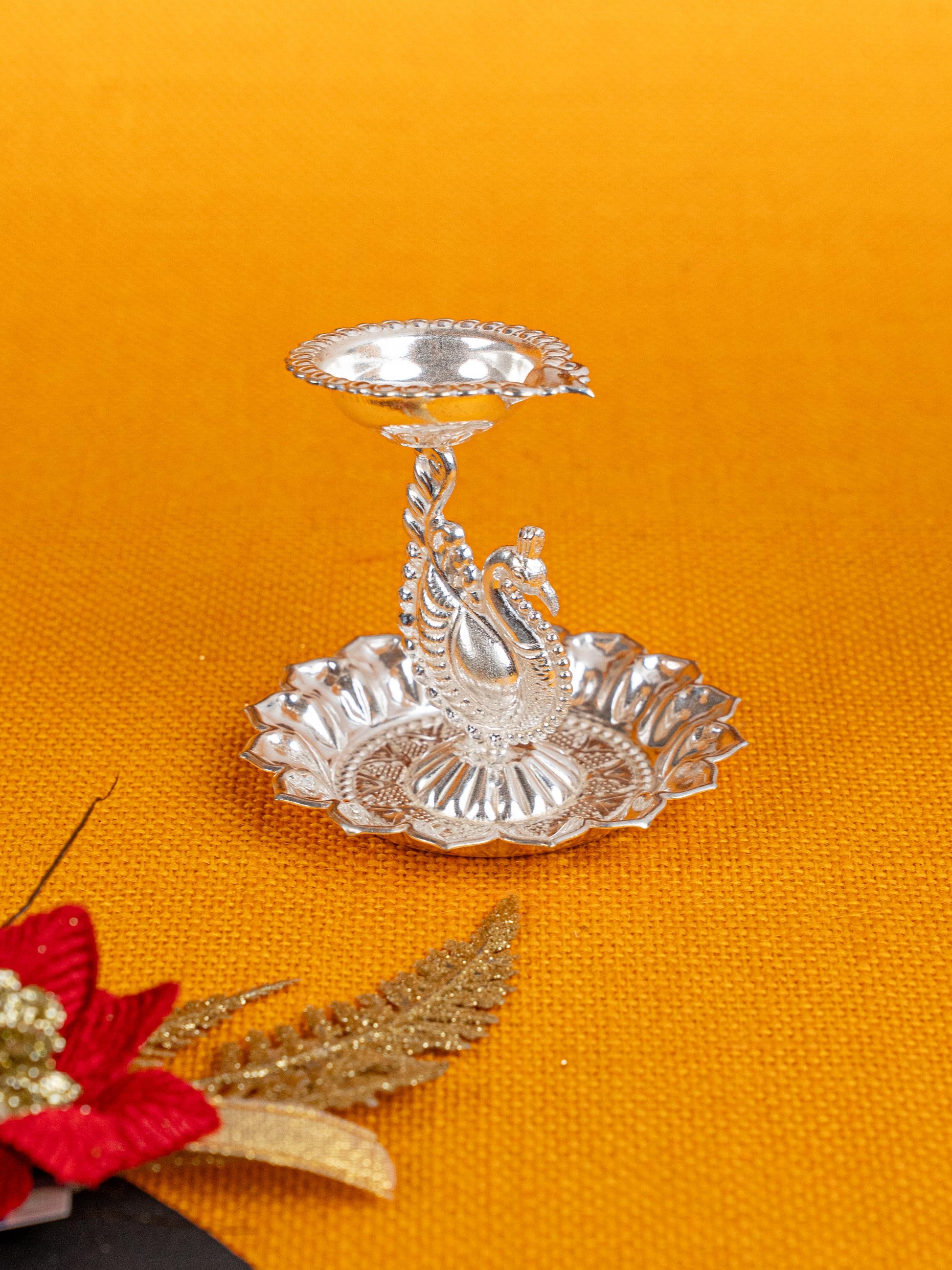 - This Annapakshi Diya Features Diya on Top with beautifully Embossed Flower base Plate, Enhancing both Stability and Visual Appeal.