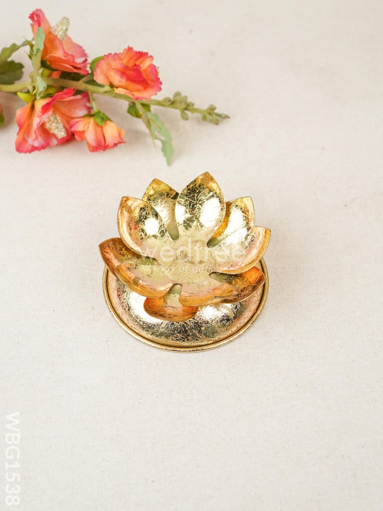 - The base is shaped like a blooming lotus, symbolizing purity and enlightenment.