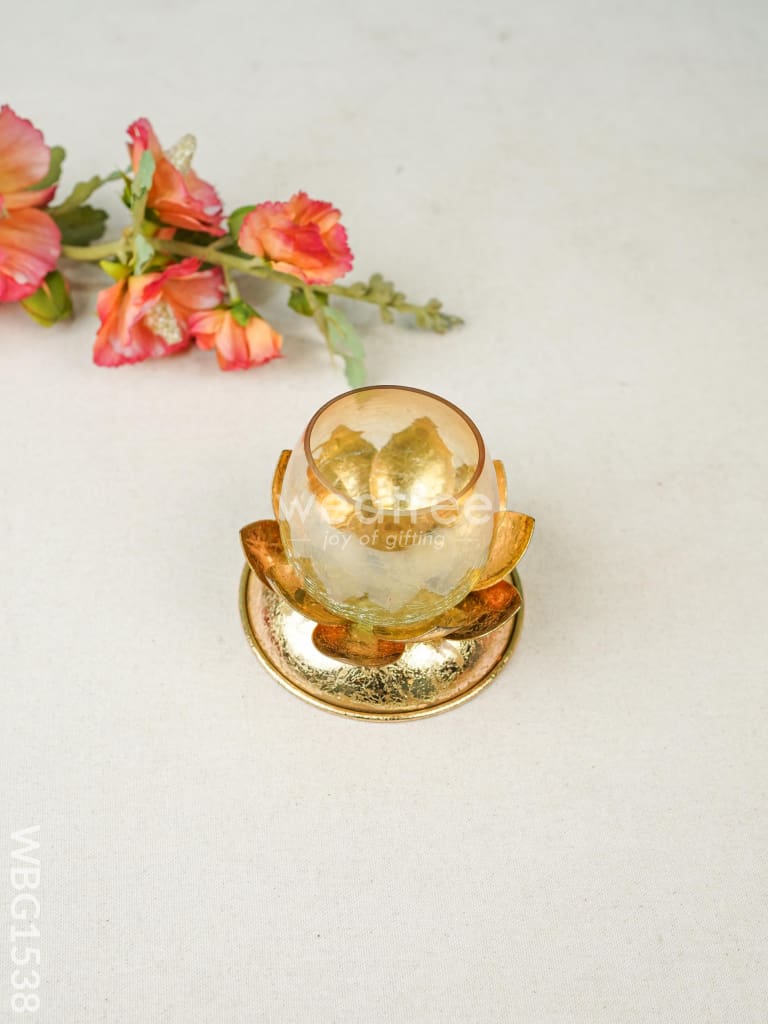 Gold Foil Stand with Cracked Glass Candle Holder - WBG1538