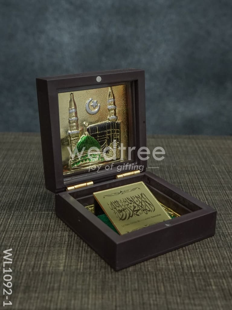 - Here is a PRAYER BOX presenting; Lord Ganesha, Goddess Lakshmi, Goddess Durga, and Mecca Medina.