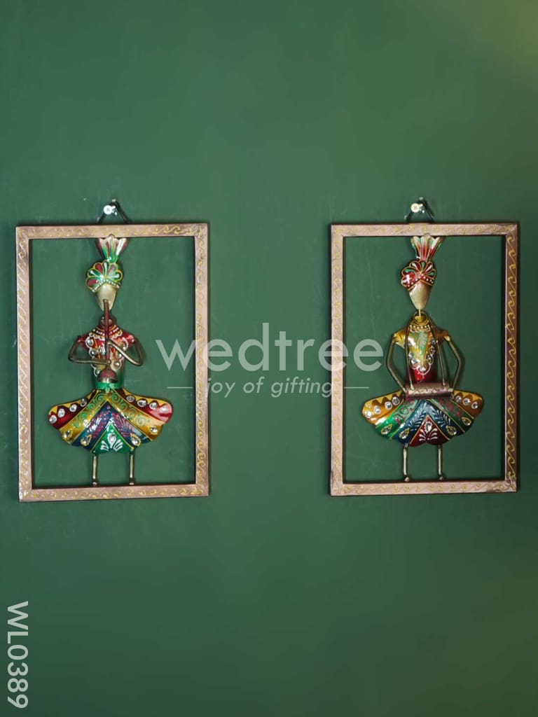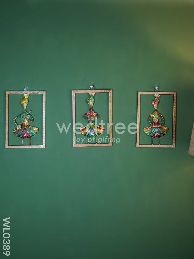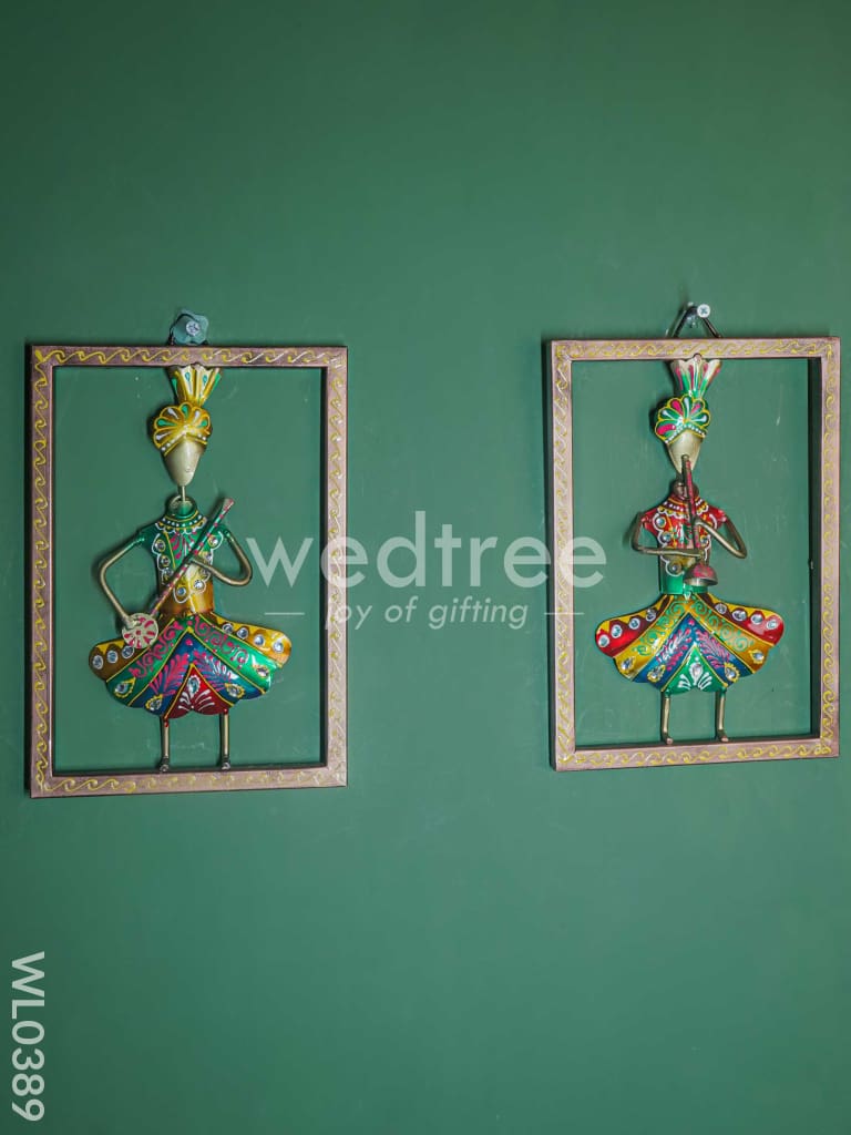 The musical wall hanging frame contains three musicians playing different musical instruments. It comes as a set of 3. Each piece is made up of metal. The hangers are beautifully handpainted in multi colours which adds charm to the whole piece. Each musicians is playing traditional instruments tabla, flute and sitar.