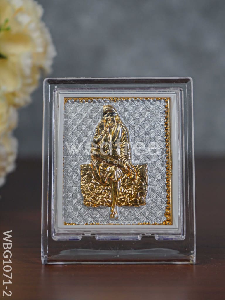Pure Silver Plated Sai Baba Photoframe (3.5 inch) with Stand - WBG1071-2