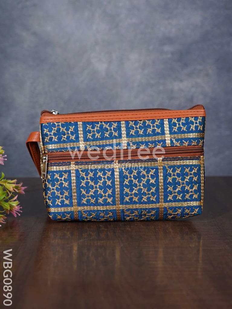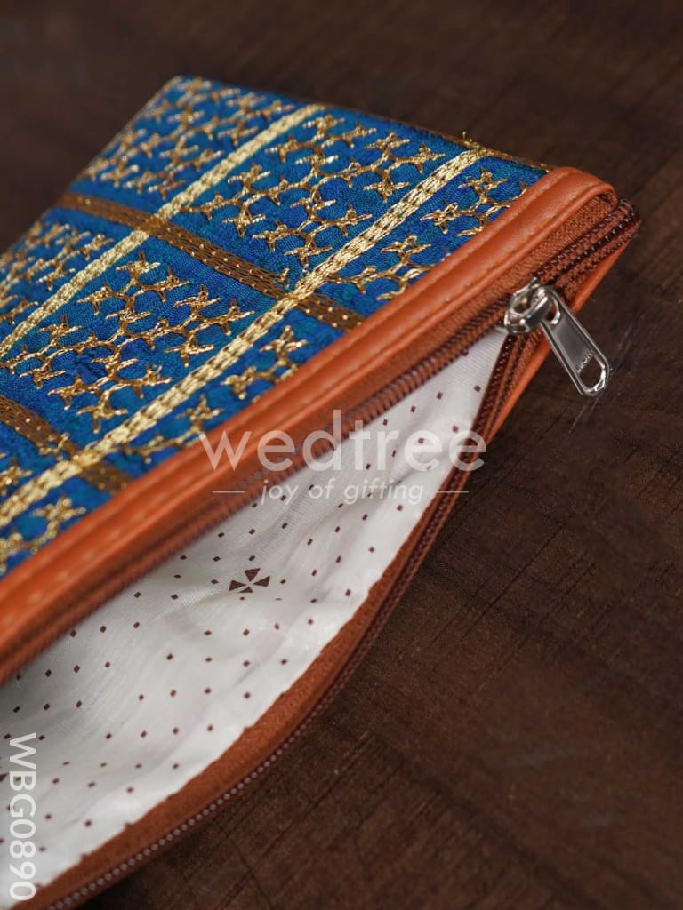 - A very pretty raw silk purse that comes with golden embroidery all throughout.