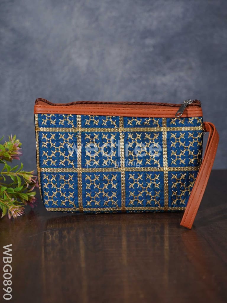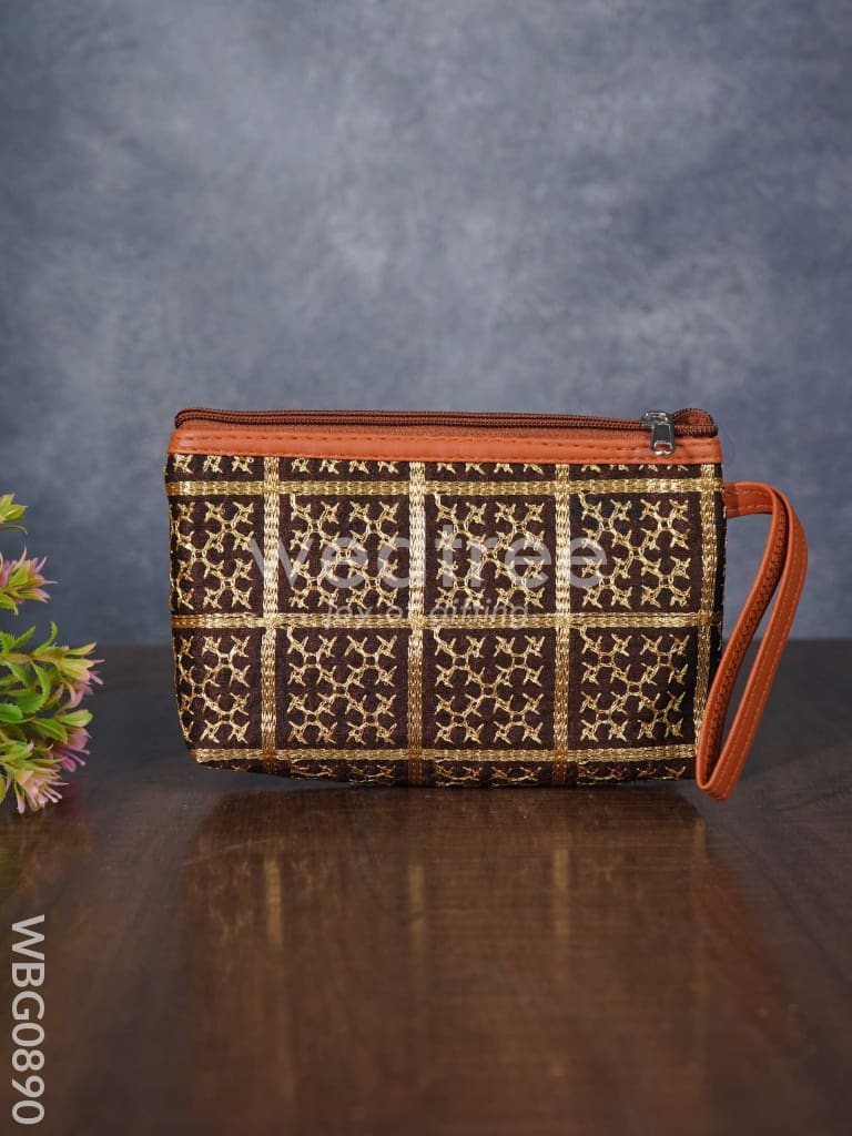 Purse with Golden Embroidery and Faux Leather Handle - WBG0890