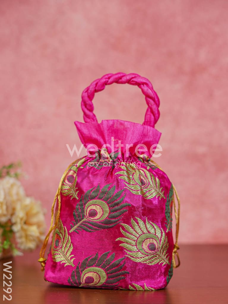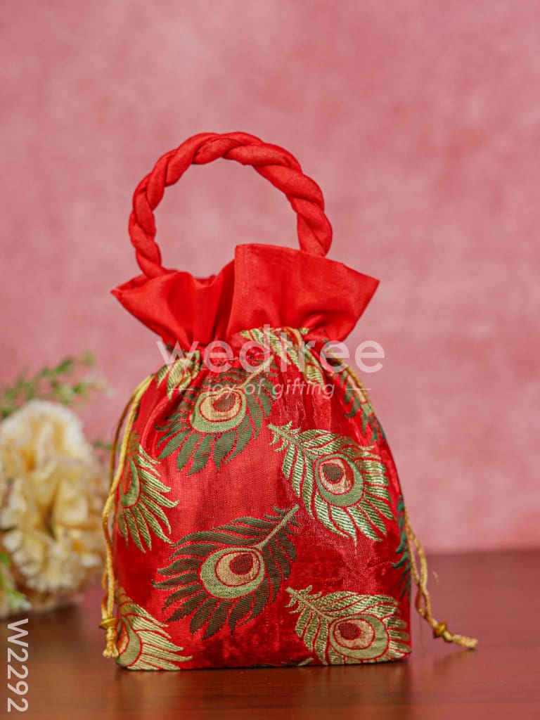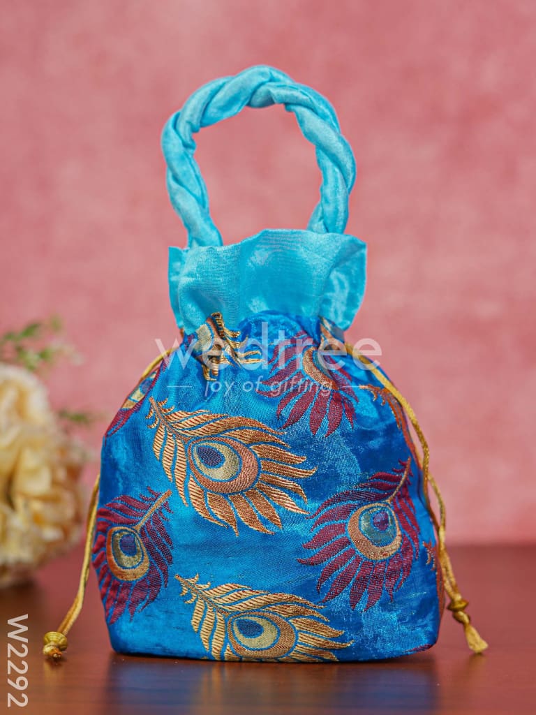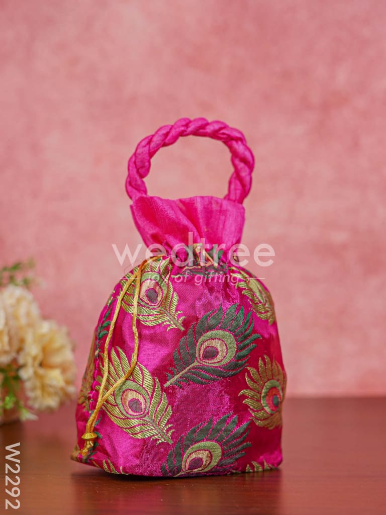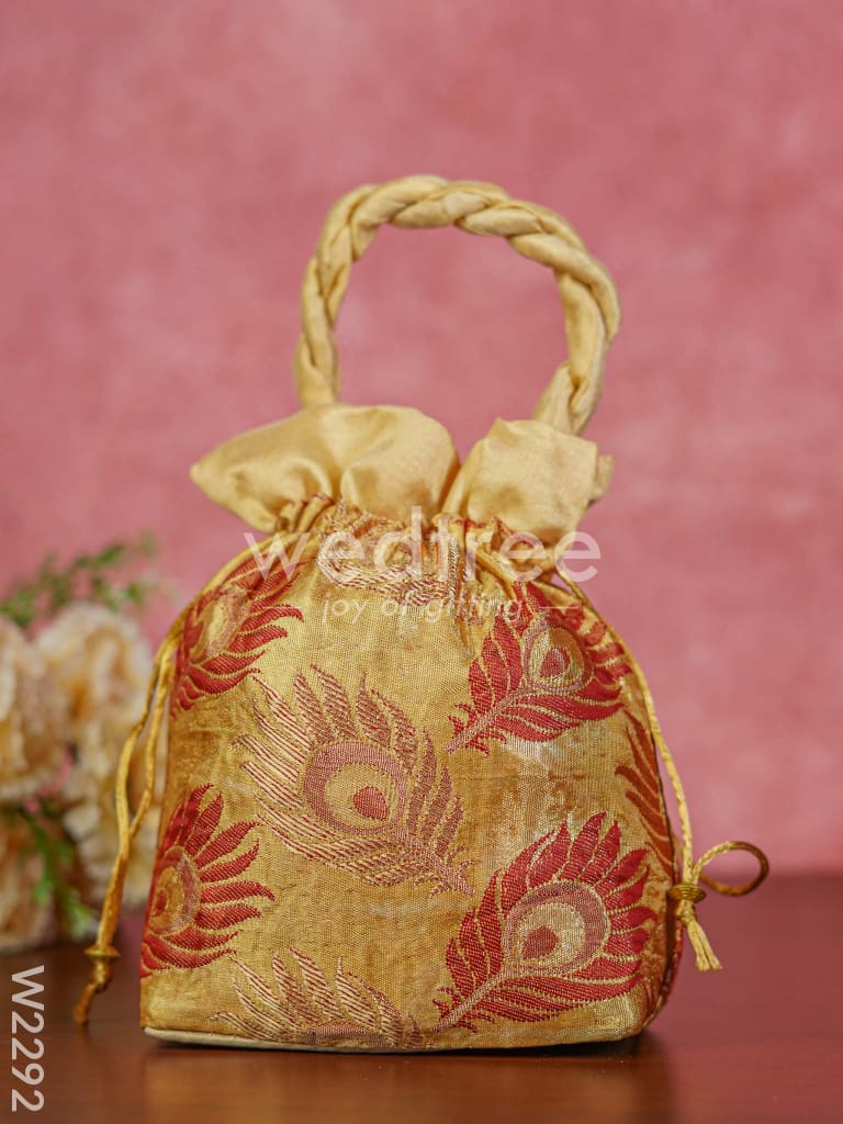 Raw Silk Potli Bag with Peacock Feather Embroidery - W2292
