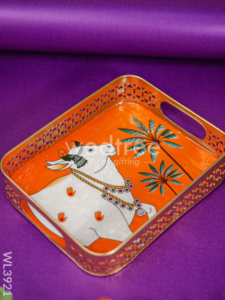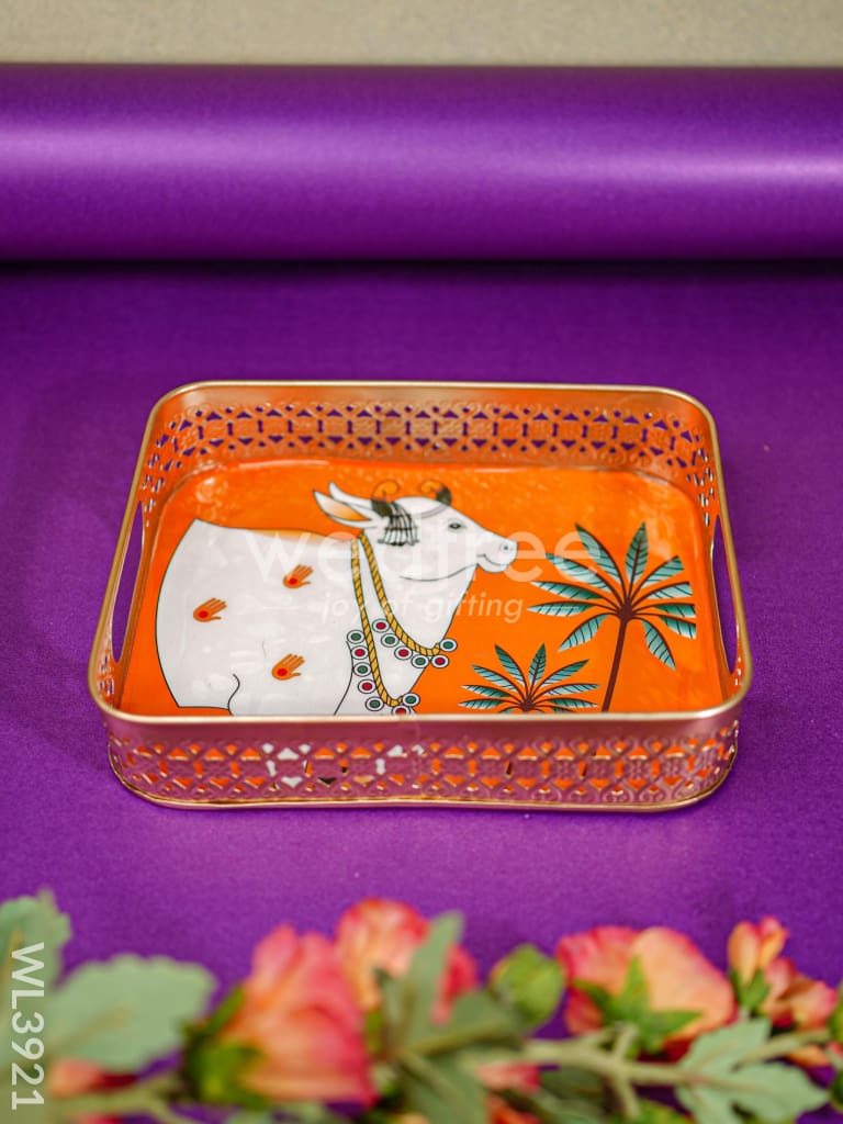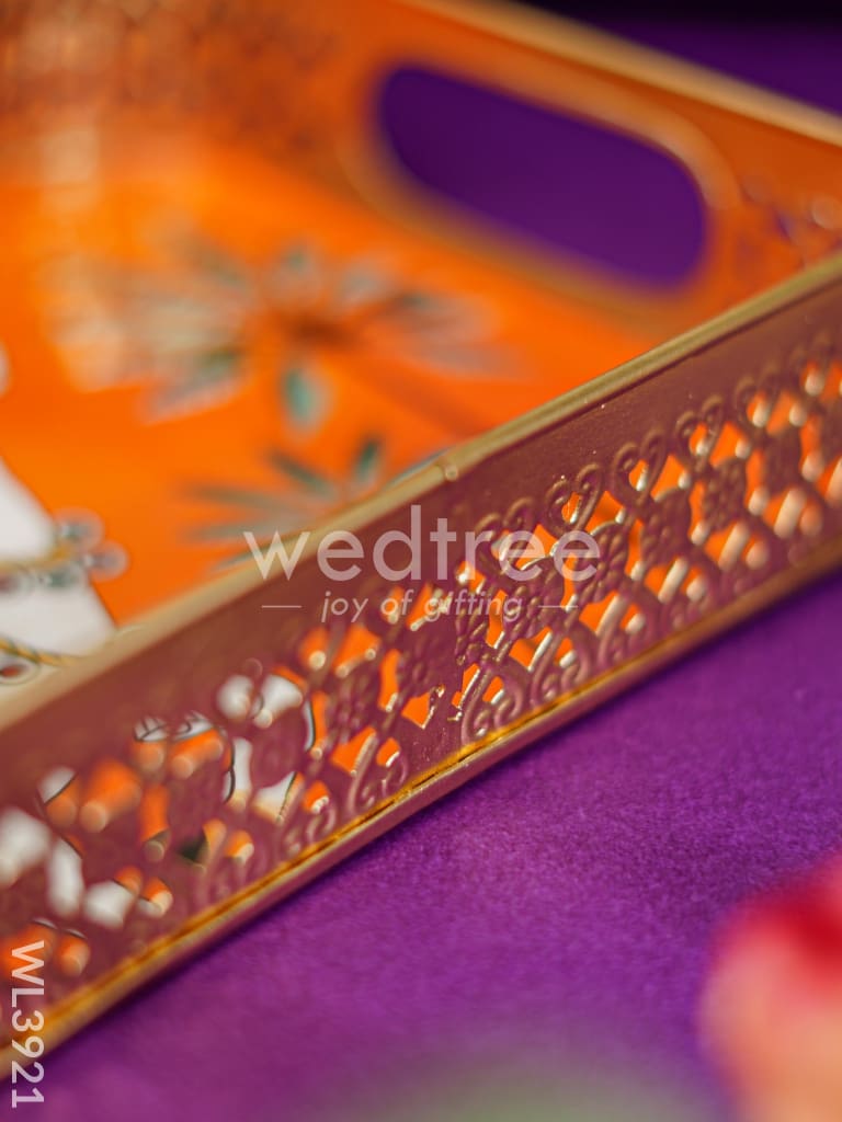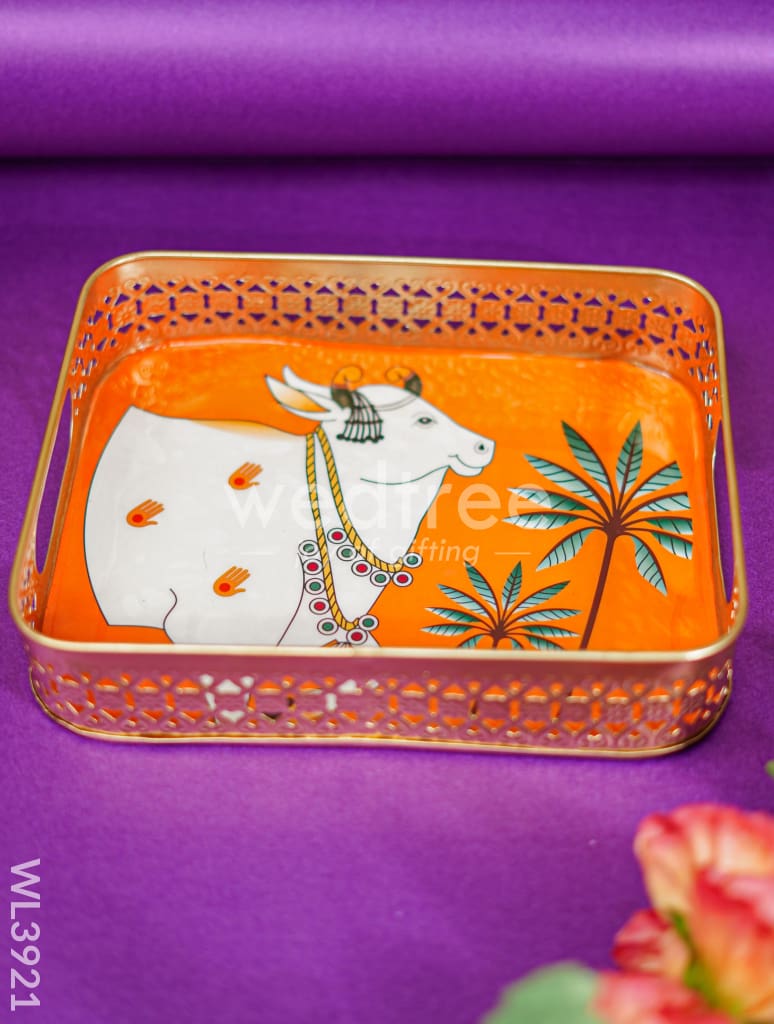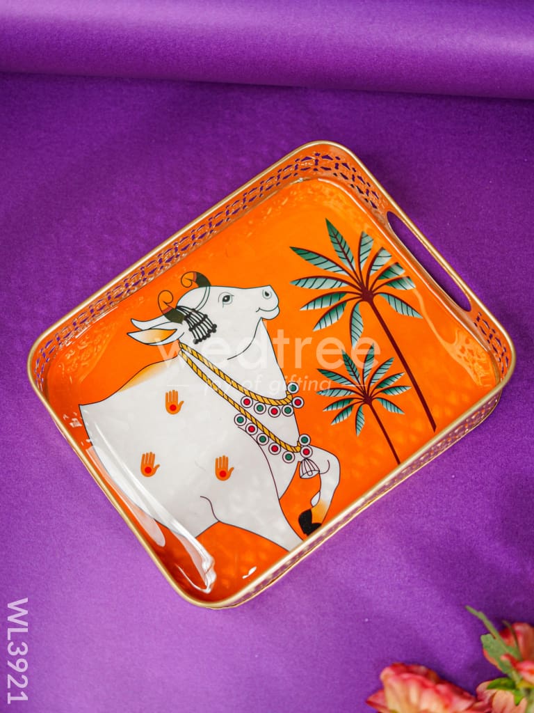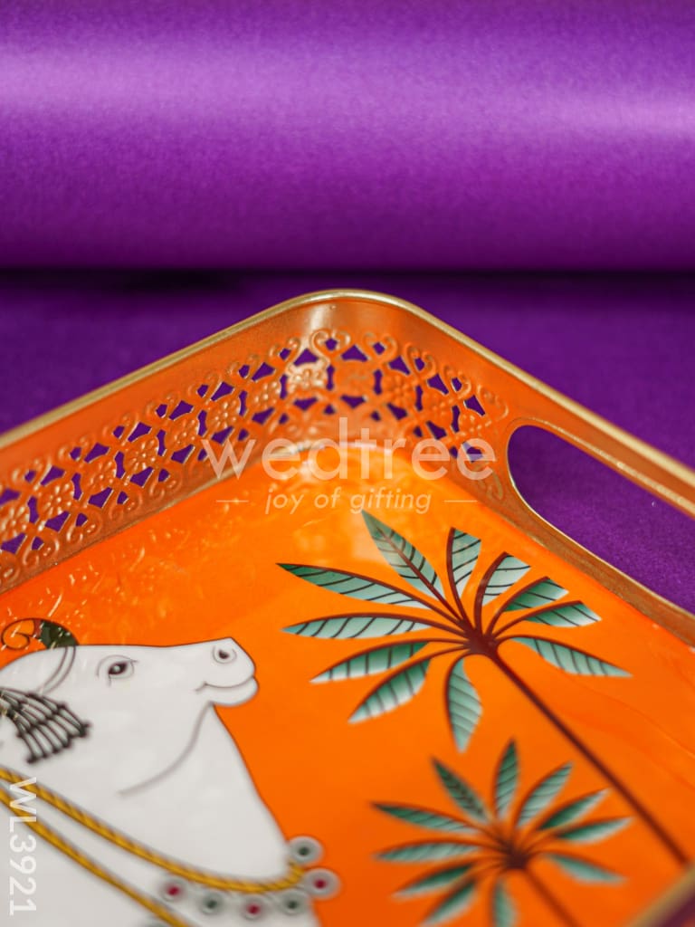 Rectangular Tray with Pichwai Design - Orange - WL3921