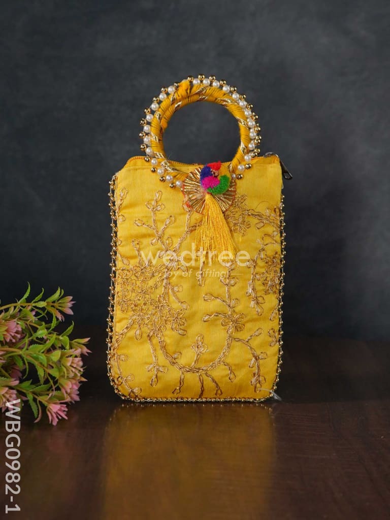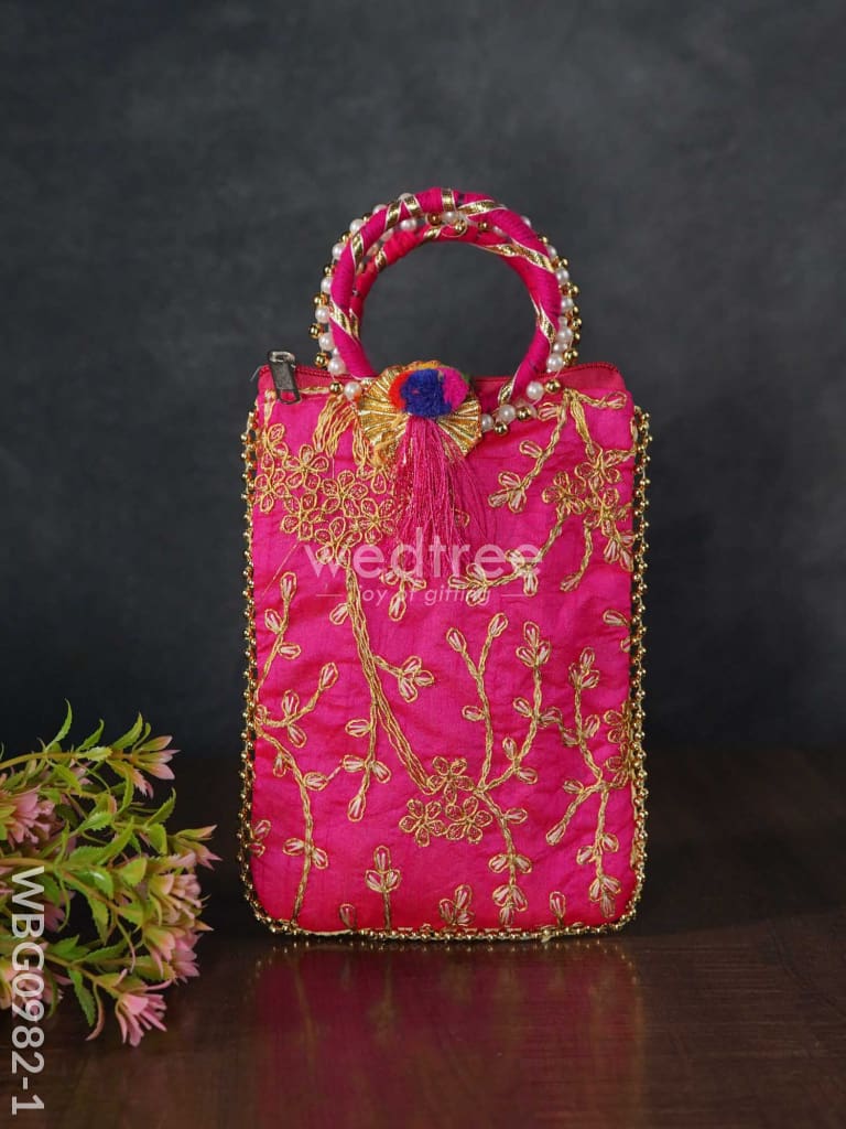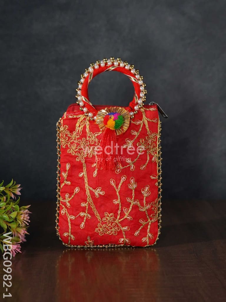 Return Gift Hand Bag with Pearl Handle - 7 inch - WBG0982-1